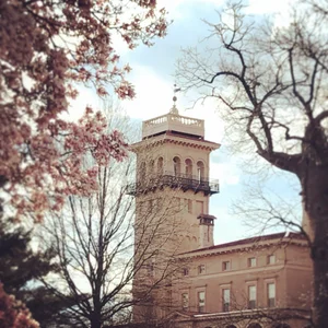 The central building has been raised one story, and received considerable addition on the north side, besides the extension of the wings, and the building of a prospect tower on the west, with a wide arcade, 109 feet in length, the building measuring 133 feet in extreme length, by 73 feet, its greatest depth. From the gate lodge, at the Harford road entrance, a well gravelled road winds majestically through the fine trees and lawns of the park, to the main entrance of the building, the Port Cochere in the tower, affording passage through an arched way into the principal hall, 23 feet high, paved with marble, lighted by four richly stained arched windows, and wainscotted with black walnut, of which the doors and massive stairway are formed. From the main corridor on the principal floor, the first door to the right leads to the parlor, 19 by 23 feet, adjoining which is the breakfast room, 18 feet square, both of which open on the large southern arcade, supported by 23 arches and pillars. Adjoining the breakfast room are the back stairs, running from the basement to the main chamber story and also to the servants’ rooms. Further east are the housekeeping rooms, closets, water fixtures, & c.